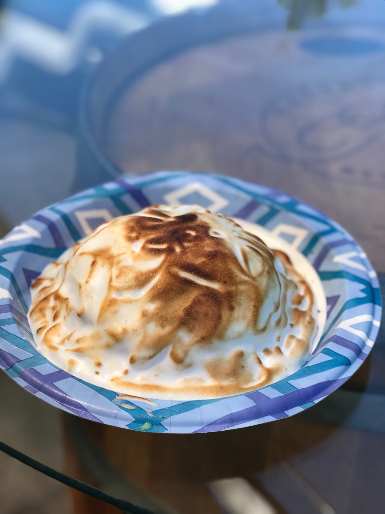 My family will give me a dare for something new to try and bake and so I was told to make a Baked Alaska. I happened to make it on the last day of school when family from out of town was over so we all got to enjoy it together.